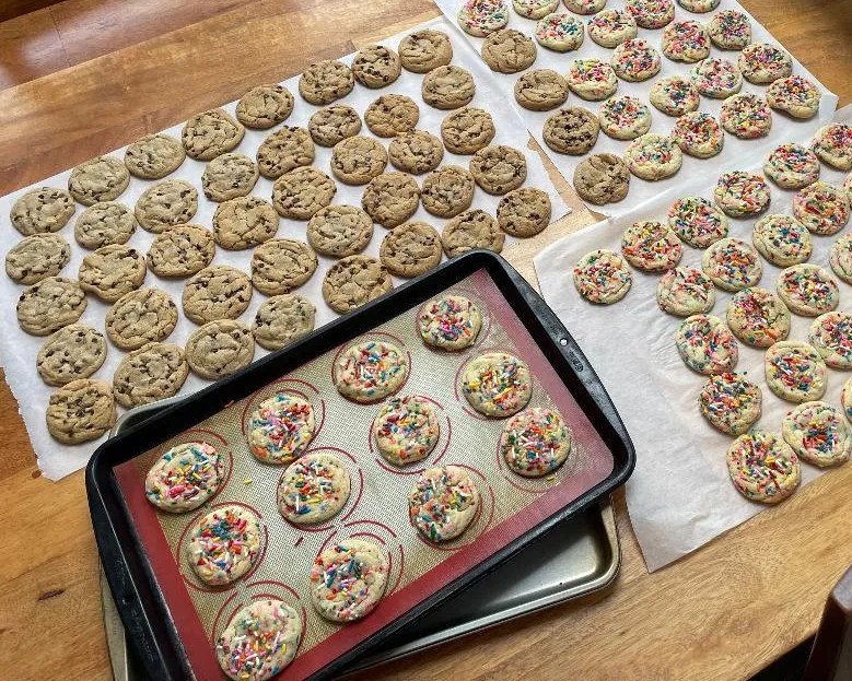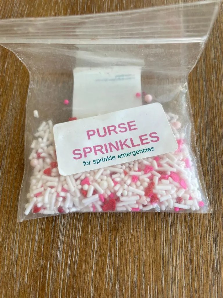 - I baked three dozen cookies for school, another 900 dozen (give or take) for home. Emergency preparedness is important. This is why I have a small bag of sprinkles in my purse at all times. (True!)