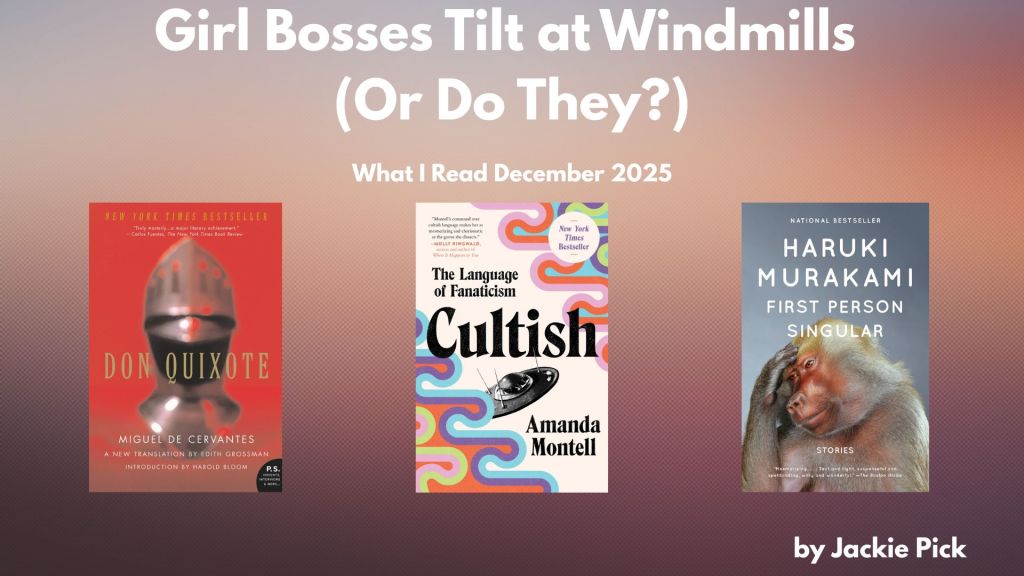 I read three books this month. “Only” three, because the page count of one of the books triumphed over my ambition to get cozy and read anywhere between 5 and 43 books. Look, as you already know if you’ve ever wandered even accidentally into my writing, I am extremely busy. Doing what, you ask? Fretting about how busy I am, which is its own full-time job. It’s exhausting and inefficient, but it’s a living. Now, please mind your business (after you finish this piece, thanks.)