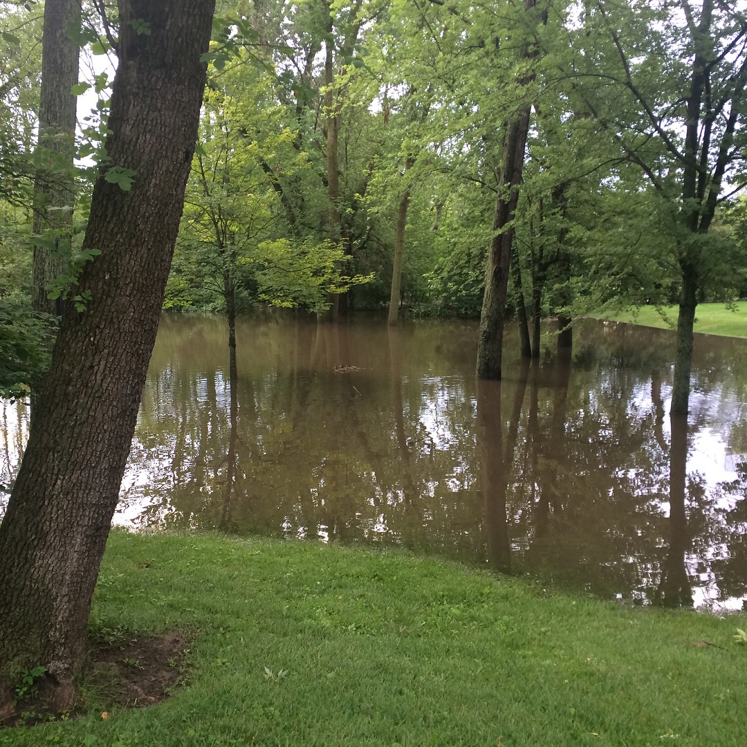 And thus we survive and we laugh, despite a veritable flood all over town and in our backyard (we live in the flood plain) which has kept us from picnicking and playing baseball for a while.