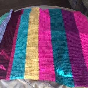 I finally finished my daughter’s blanket which ended up being a color scheme I can only call Fever Dream.