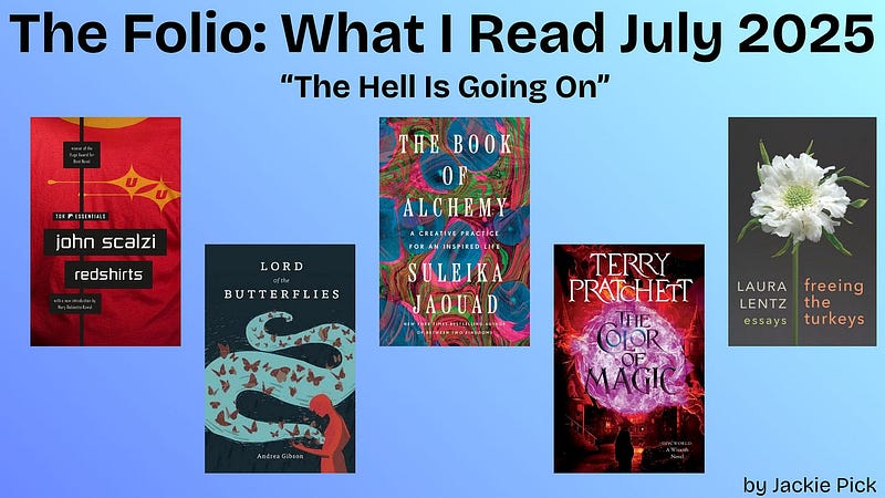 All five books embrace the “lean into confusion and see what happens” principle. Narrators, characters, and, in one case, sentient luggage, try to make sense of their place in a universe that insists it’s operating by rules when it clearly isn’t. This requires surrender in a “realizing the plan is not The Plan” sense, not the “I give up” sense.