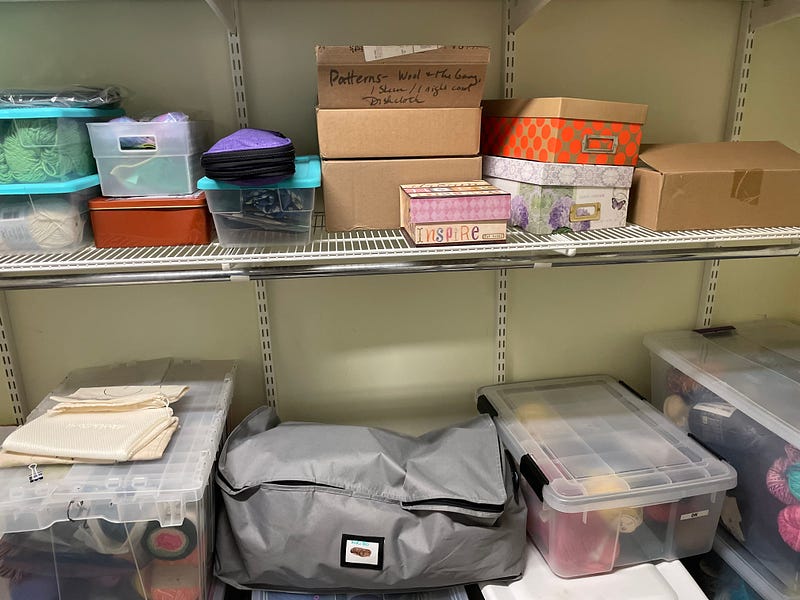 - I cleaned out my knitting nook. Unlike any knitter ever, I buy more supplies than I’ll use in a lifetime. It’s a bulwark against death, profound optimism, and maybe some self-delusion. I don’t knit that fast. I have the same problem with books. Maybe I can make a deal with someone in that department to keep me going until all the books are read and the wonky hats knit.