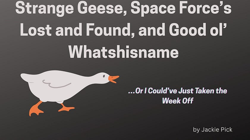 Strange Geese, Space Force’s Lost and Found, and Good ol’ Whatshisname